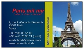 Verbringen Sie mit mir eine angenehme Entdeckungstour durch Paris, ganz individuell und exklusiv! Erfahren Sie mehr über die verschiedenen Möglichkeiten der Stadtrundgänge! Lernen Sie mehr über mich.
